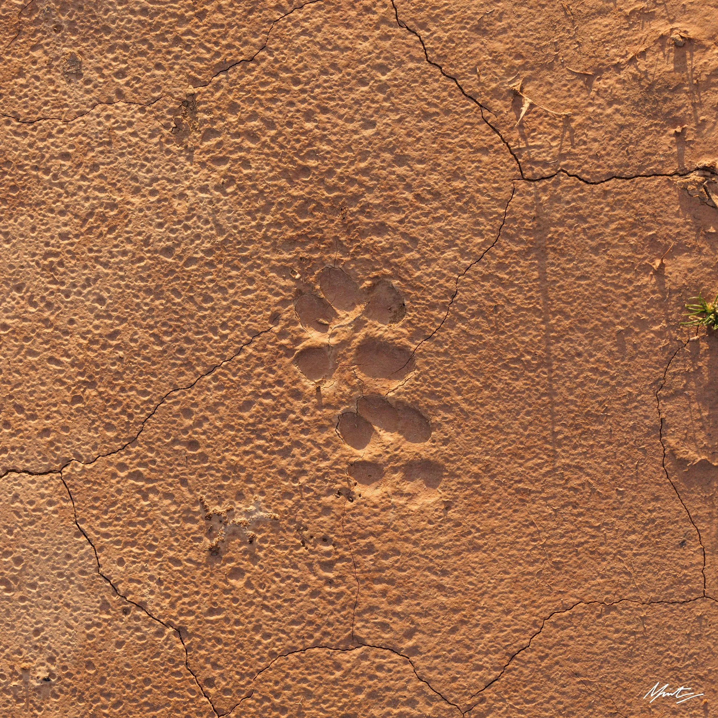 I decided to go for a number of walks and get the lay of the land first. It was the second morning when I stumbled upon a very small patch of rippled sand, no bigger than 2m sq. It was just off the trail, so I manoeuvred myself through the scrub to test some quick compositions with my phone, careful not to walk onto what might be a photograph. The simplicity and dynamism of form had captured my imagination, yet for some reason I didn’t have the urge to rush back with my proper camera. I think the idea of it was in some ways more entrancing than the reality. In retrospect, maybe I should have forced myself to return that same evening, even if it was just for practice. More importantly, I would have gained the experience of being out in the desert during the magical hours of dusk. In the end, it was not to be. On a separate hike up into the hills, my brothers and I returned passed this scene and it was accidentally walked through.