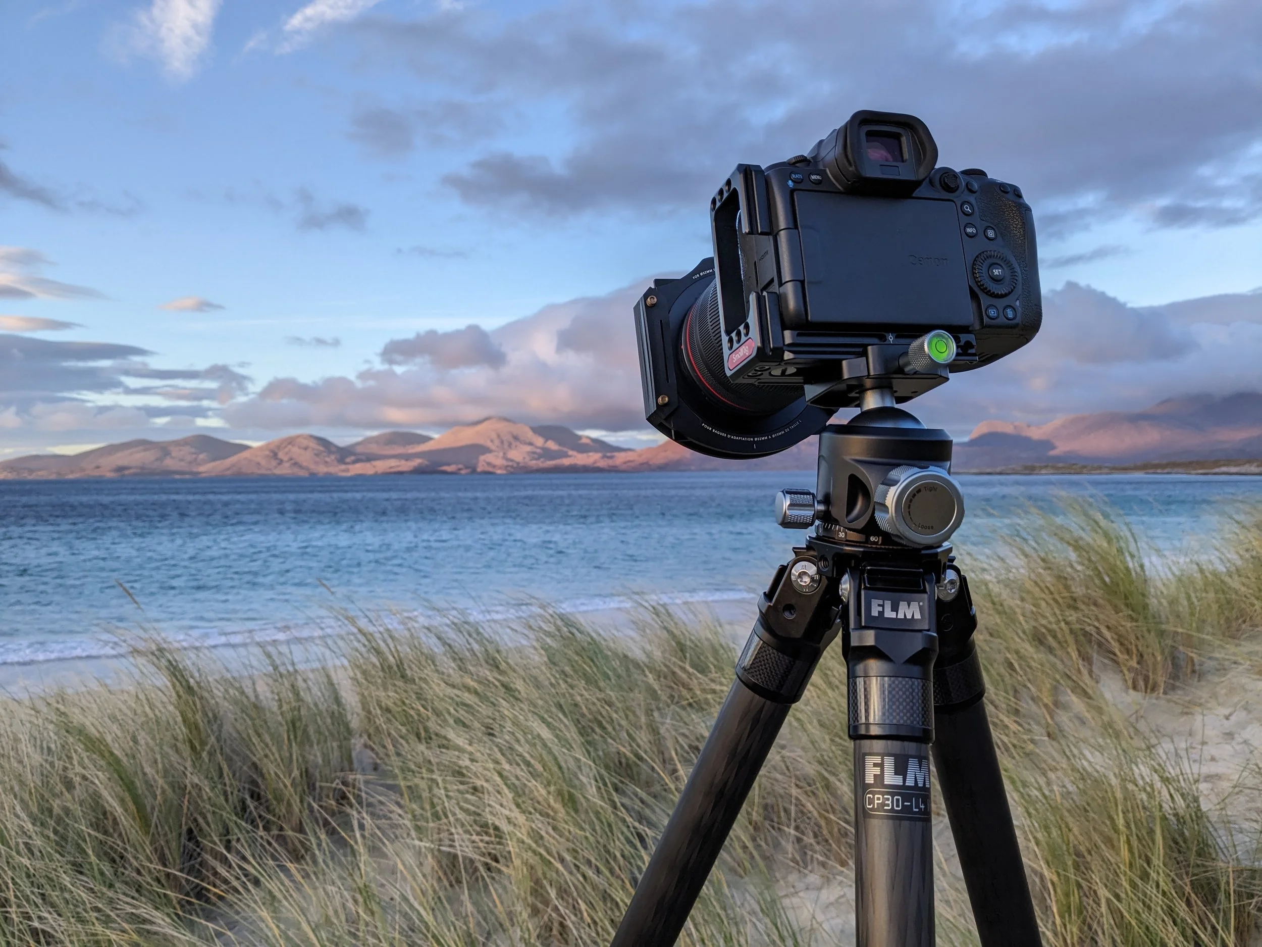 Main Camera: Canon R5 w/ Smallrig L-Bracket (865g): In terms of IQ, there are pretty much no wrong answers when it comes to modern mirrorless camera bodies. The real choice here, at least to me, was down to a couple of factors: 1) Ergonomics. Of all the camera bodies I tested (Nikon Z7ii, Sony A7RV, Fujifilm GFX 100s/XT-5), the Canon was by far the most comfortable to hold. I strongly recommend hands-on testing. That brings me onto 2) The lens ecosystem you are buying into. I loved Canon’s range of RF mount lenses; if you are wanting third party primes you might look to other brands as Canon has only just opened up the mount. The Nikon Z7ii is probably the best value camera on the market provided you only do landscape photography. And for everyone thinking that moving to micro-four thirds (not a valid option for IQ in my opinion) or an APSC camera will save huge amounts of weight or bulk, it’s not as clear cut as you might think. For example, comparing a Fuji XT-5 set up vs. a Nikon Z7ii/Sony A7RV/Canon R5 set up with equivalent 24-70mm & 100-400mm lenses, we see the Fuji come in at 2.6kg vs. the rest between 2.7kg - 2.9kg.