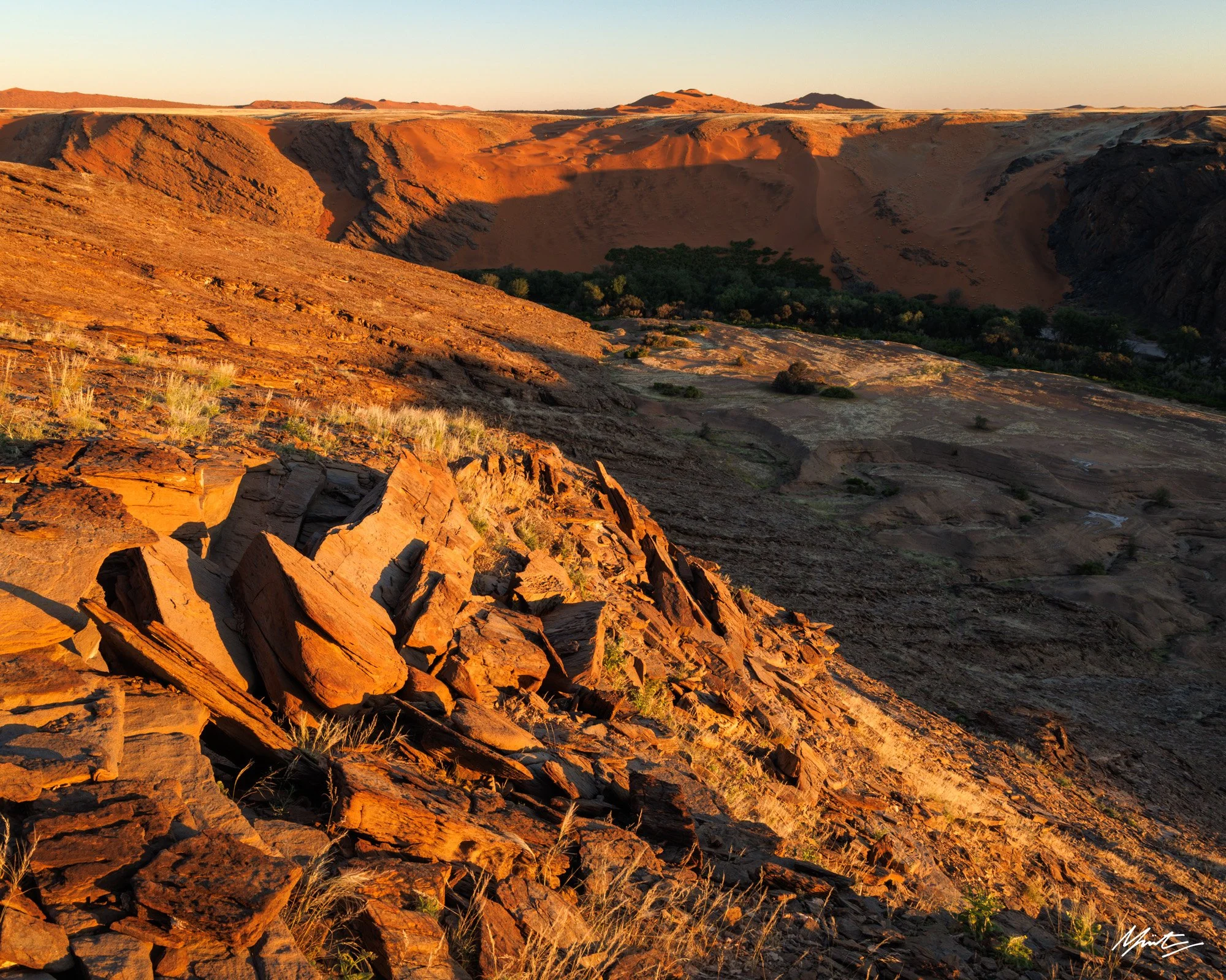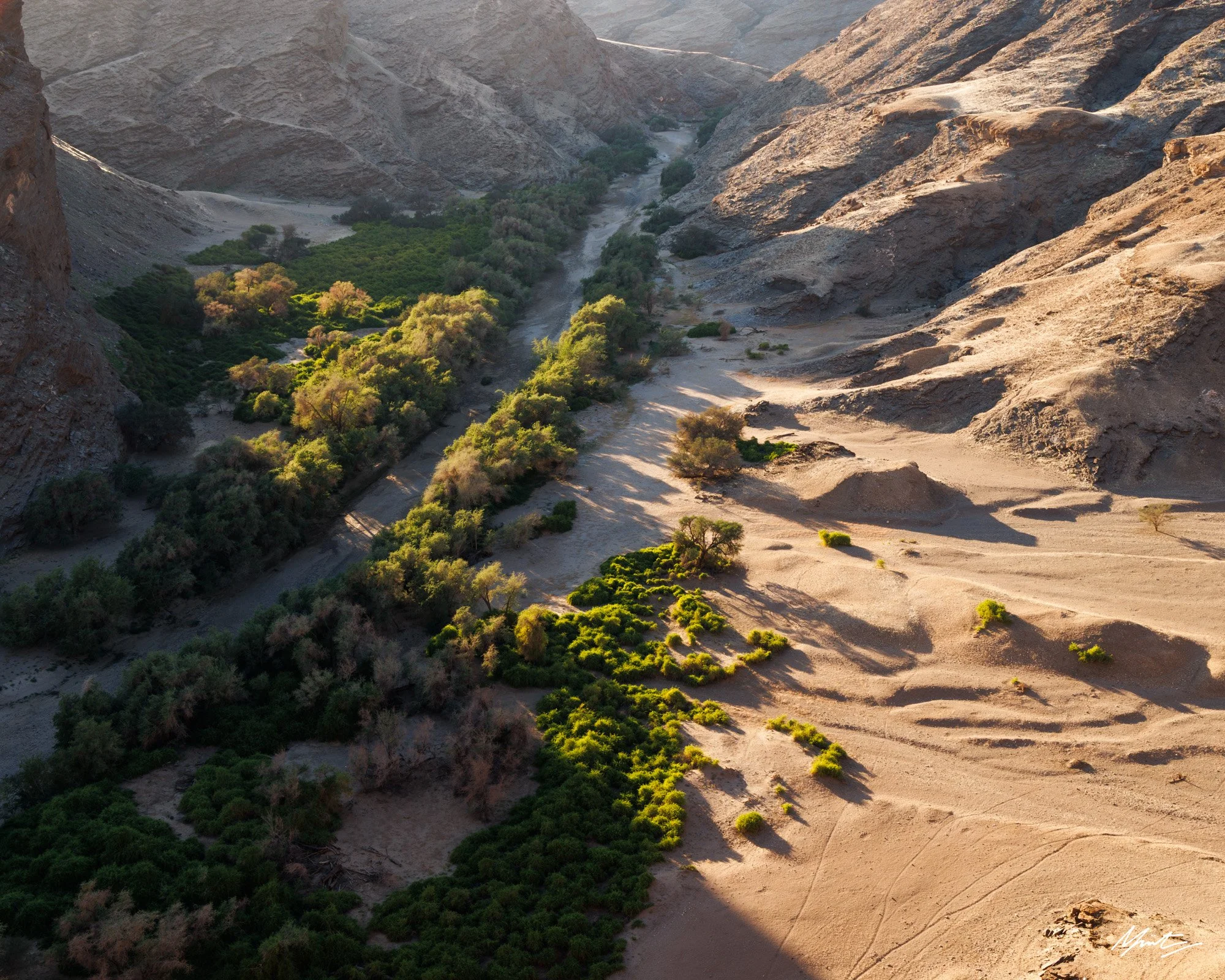 The Kuiseb Canyon begins to widen now, with the Namib Sand Sea slowly creeping in from the south. At the end of the day, we’ll ascend out of the canyon once more to find spectacular views over the winding riverbed.